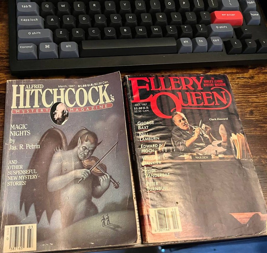 Several months ago I picked up a few old copies of Alfred Hitchcock’s Mystery Magazine from the 80s. Obviously I was taken by the novelty, we don’t see stuff like it anymore.
