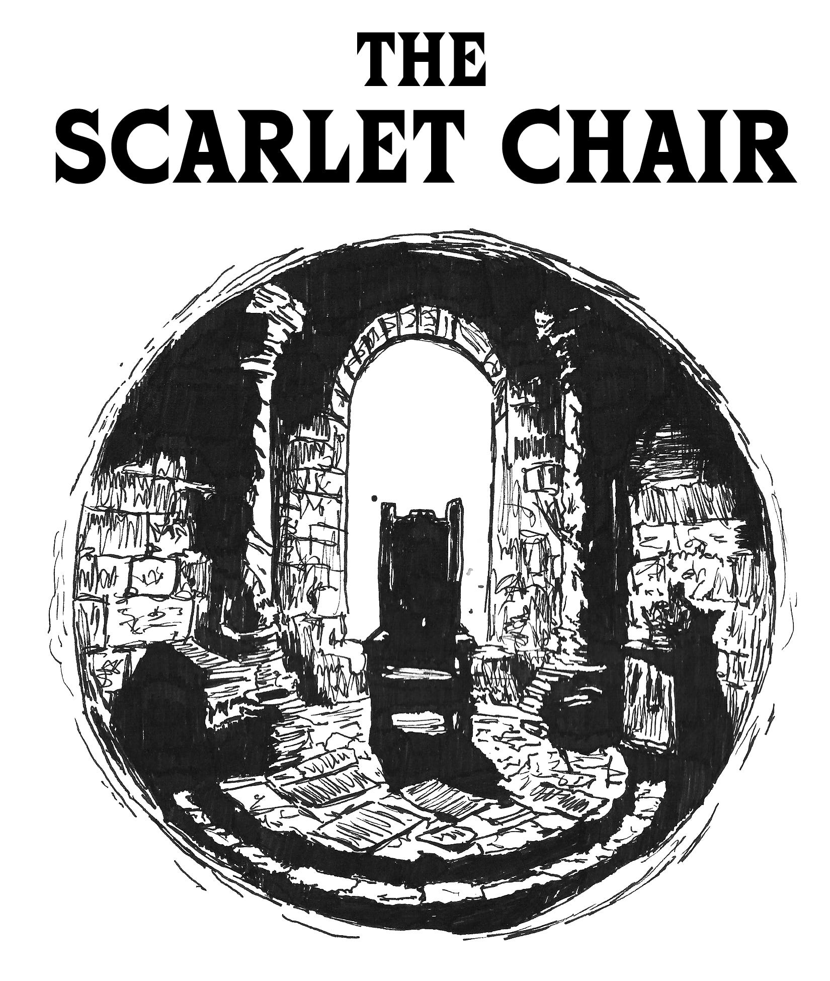 And perhaps it was fate that had led them there, but the keep had been built for a purpose beyond his comprehension. A cruel, unforeseen machination led Lord Sanguine to the throne room, so he may lay eyes upon a petinaed chair, with a glowing ruby embedded in its backrest. That chair became the lord’s singular obsession every day hence. The lord named it The Scarlet Chair, not for its physical features but for the invigoration it seemed to inject into him each time he enjoyed its cushionless seat.